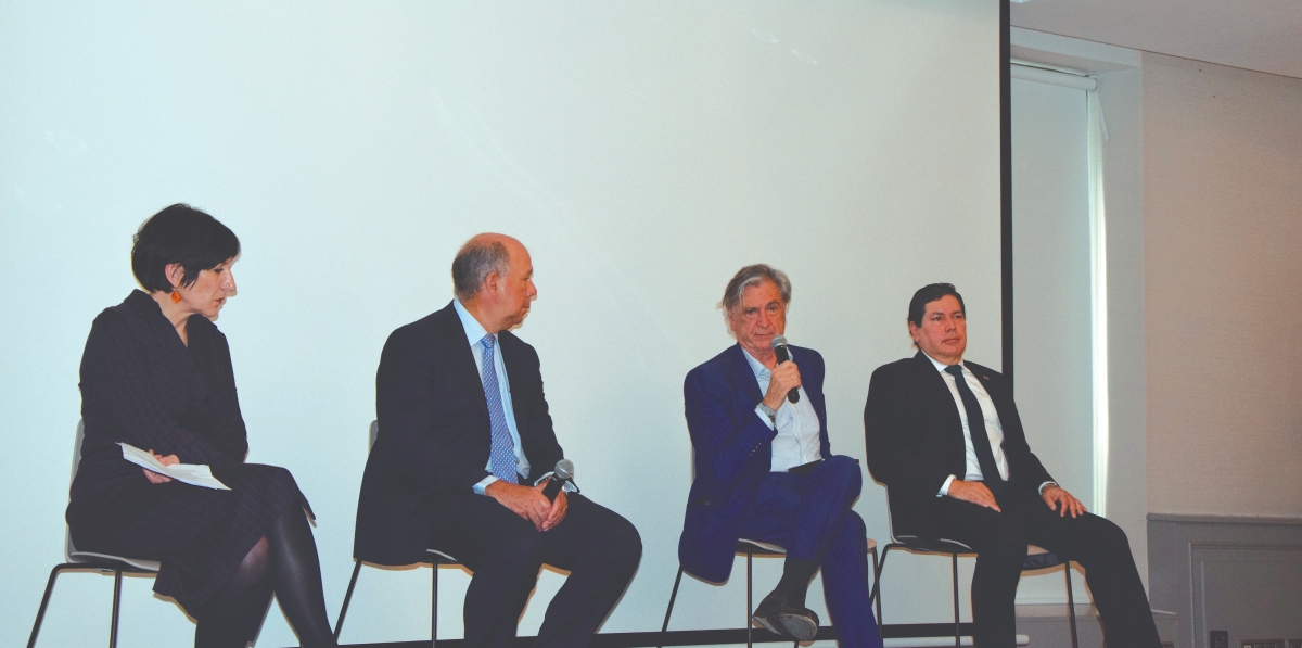 Sonia Martín, jefa de la terminal; Jesús Cuéllar, presidente de Foro MADCargo; Carlos Vargas, CEO de Andino Global; y Galo Molina, presidente de Alacat. Foto M.c.