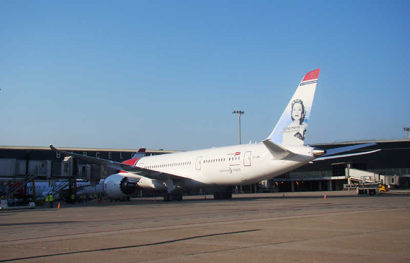 El avión, también conocido con el nombre de Dreamliner, aterrizó a las 19.30 horas con pasajeros procedentes de Oslo y salió una hora después, también con destino a la capital noruega.Desde el punto de vista de fabricación, este avión supone un salto revolucionario en el diseño de aeronaves, puesto que consume un 20% menos de combustible que cualquier otro avión de su tamaño yestá compuesto por unos materiales que aportan una reducción de la presión de la cabina, más aire y menos turbulencia.La compañía Norwegian operará en Barcelona con este avión cada lunes y viernes durante los meses de julio y agosto, confirman desde el Aeropuerto de El Prat.