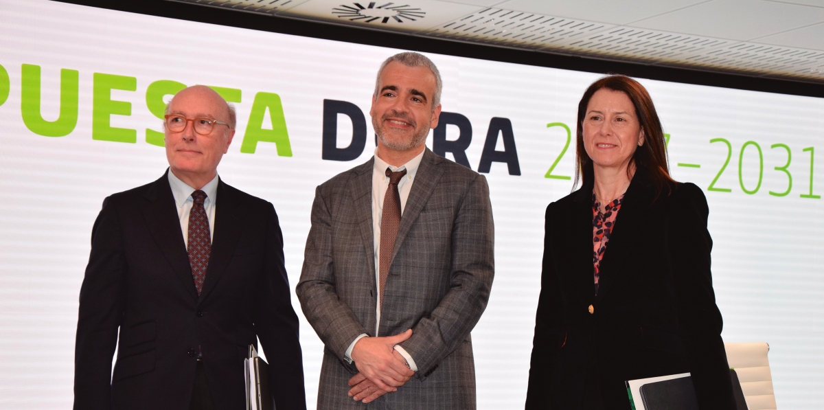 Javier Marín, vicepresidente ejecutivo; Maurici Lucena, presidente y CEO; y Elena Mayoral, directora general de Aeropuertos de Aena. Foto M.C.