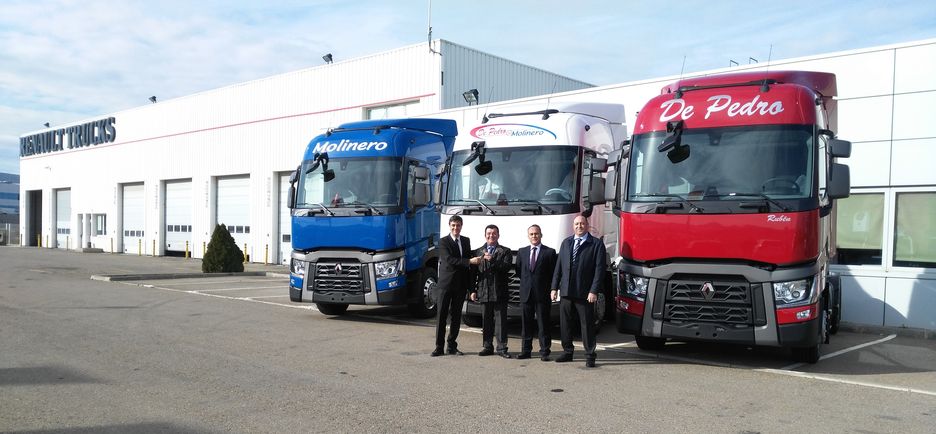 La entrega de las tres primeras unidades se ha realizado en las instalaciones de RTCE Zaragoza, distribuidor oficial de Renault Trucks, y contó con la presencia de los responsables comerciales de la marca.El Grupo que componen De Pedro y Molinero lleva operando más de 70 años, acumulando una experiencia en el transporte de mercancías, nacional e internacional, que no deja de apostar por el crecimiento, la calidad y la innovación, como hiciera desde sus inicios.Con sedes en las localidades sorianas de Ólvega y El Burgo, las compañías cuentan con una flota de más de 600 camiones, operando en toda la Península y en Europa. Todas las tractoras se sustituyen cada tres años como máximo.