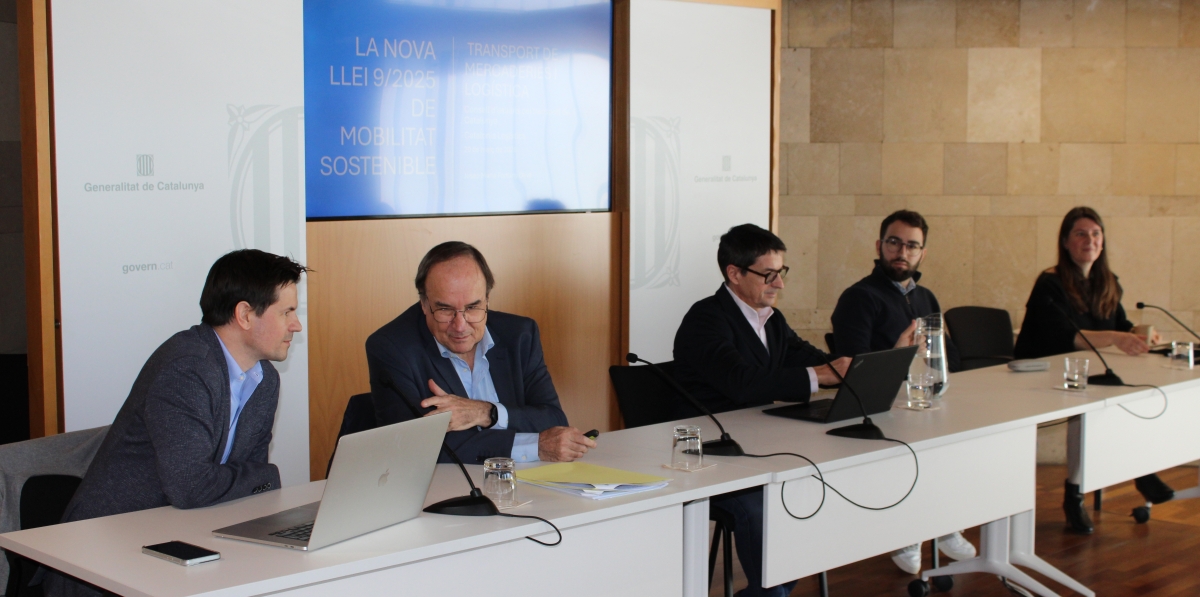 Oriol Martori, Managing Director de Velion Innova; Josep Mª Fortuny, abogado; Daniel Fernández, subdirector general de Ordenación del Transporte y desarrollo sectorial; Pol Carreras, responsable de energía y sostenibilidad en Tandem HSE; y Marta Losada, gerente de Catalonia Logistics. Foto M.V.