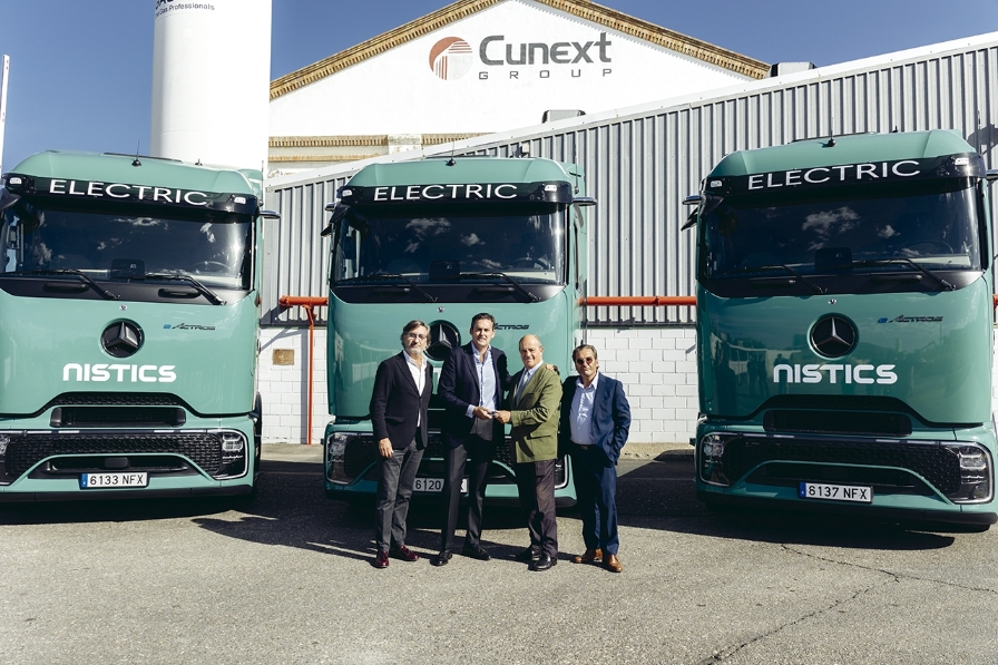 MADRID. En el marco de su estrategia de sostenibilidad y logística verde el operador logístico internacional Nistics, integrado en la Corporación Cunext, acaba de sumar a su flota 5 nuevas tractoras 100% eléctricas Mercedes-Benz eActros 600 LS, que han sido suministradas a través de Eje Occidental, concesionario Mercedes-Benz y FUSO en las provincias de Badajoz, Cáceres, Ciudad Real, Toledo y Córdoba.