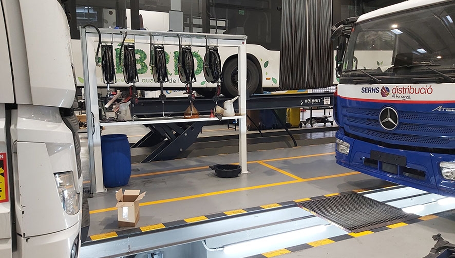 En este sentido, cabe destacar que, entre su equipamiento tecnológico de última generación, este nuevo espacio de Servicio Postventa de Mercedes-Benz Trucks España dispone de elevadores que permiten trabajar con tráiler completos, un aspecto que ahorra tiempo de paralización al no tener que desenganchar las plataformas.