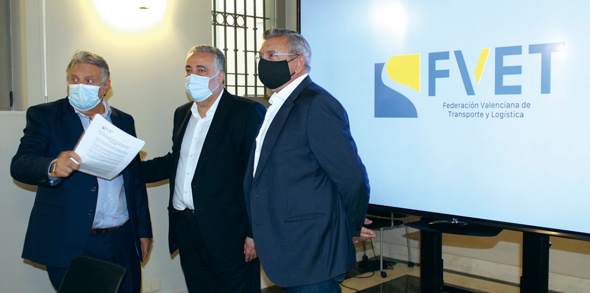 Carlos Prades estuvo acompañado por Juan Ortega, vicepresidente y Carlos García, secretario general, de la FVET, quienes apoyaron el discurso de Prades aportando la foto fija del sector valenciano (integrado por 14.800 empresas) y el análisis de lo acontecido durante los meses más duros de la pandemia.