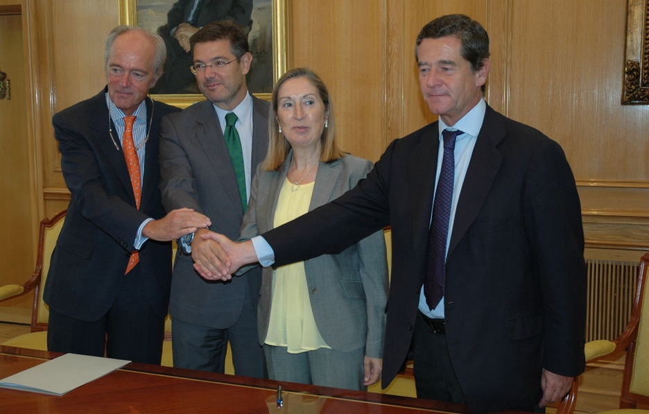 Ana Pastor, ministra de Fomento, presidió ayer en la sede del Ministerio el acto “sin declaraciones” de la firma del acuerdo entre Adif, representado por su presidente, Gonzalo Ferre, y ANFAC, representado por su vicepresidente ejecutivo, Mario Armero.El convenio definirá un programa de actuaciones que tiene entre sus medidas más destacadas elaborar una propuesta de mapa de conexiones de la red ferroviaria con las fábricas españolas de vehículos, destacando la interconexión con los puertos de mayor relevancia para el tráfico de automoción y con las fronteras, identificando las prioridades y determinando qué acciones hay que llevar a cabo para, dependiendo del volumen de demanda, transformar ese mapa en una red de infraestructuras ferroviarias eficiente para el sector.En líneas generales, el objetivo del convenio firmado ayer es mejorar el transporte ferroviario de automóviles y de piezas y componentes para su fabricación, factor esencial para lograr impulsar la competitividad de las plantas de fabricación de automóviles de España.Grupo de alto nivelPara su implementación se va a crear un grupo de alto nivel, compuesto por el vicepresidente de ANFAC, Mario Armero, y por el director general de Servicios a Clientes y Patrimonio de Adif, Jorge Segrelles, quienes designarán su composición con el objetivo de iniciar los trabajos para establecer las líneas básicas y el programa de actuación.Las medidas previstas irán destinadas a mejorar la gestión en términos de calidad, fiabilidad y eficiencia de la red de infraestructuras, analizando el aprovechamiento y uso de la red existente, mostrando nuevas necesidades y estableciendo potenciales acuerdos de prestación de servicios por parte de Adif.Según ANFAC, “se incluirán análisis precisos e individualizados para asentar compromisos contractuales entre el operador ferroviario y los fabricantes”.“Conexiones, terminales e instalaciones de apoyo y ramales, líneas o prestación de servicios serán elementos a evaluar tanto en costes como en retornos derivados de demandas de tráfico realistas a medio y largo plazo”, afirma la patronal de fabricantes.