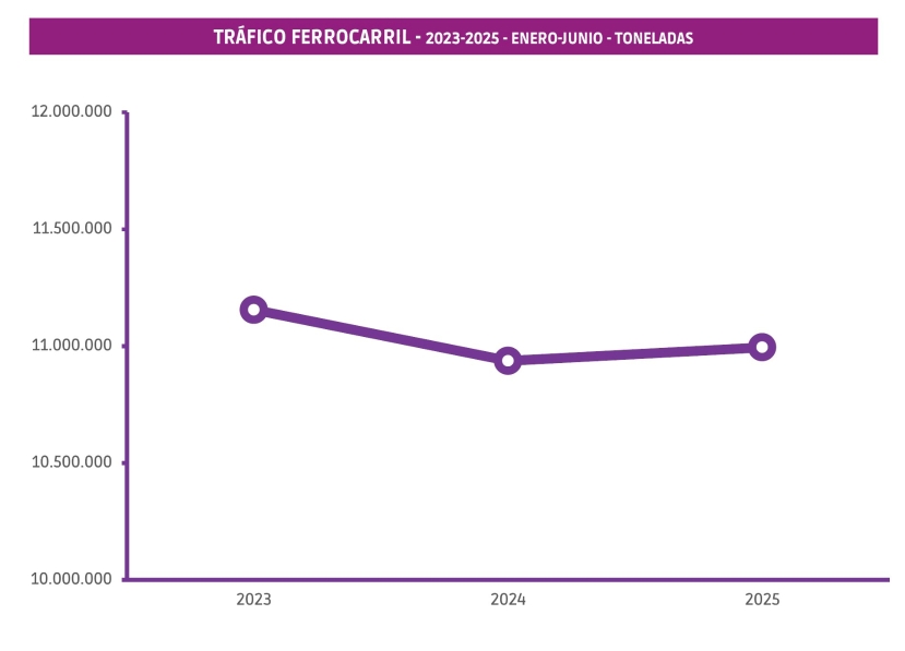 Con esta perspectiva, al cierre del primer semestre se transportaron un total de 10,99 millones de toneladas netas, que con respecto a igual periodo de 2024 supuso un crecimiento del 0,5%, mientras que en estos seis meses las toneladas kilómetro retrocedieron un 0,44%.