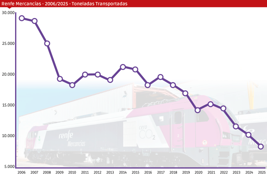 madrid. De acuerdo con los datos hechos públicos por el Ministerio de Transportes, el operador ferroviario Renfe Mercancías registró en el año 2025 un tráfico total de 8,47 millones ...