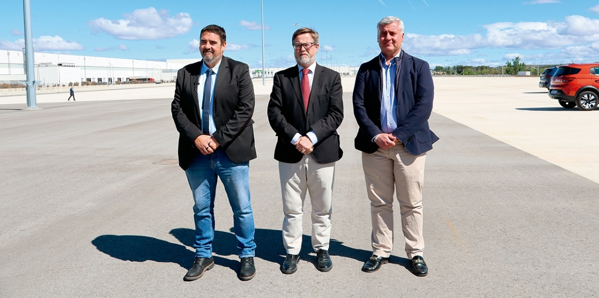 Participantes ayer en la visita del empresariado local a la Port Tarragona Terminal Guadalajara-Marchamalo. A la derecha, Santiago Castellà, presidente de la Autoridad Portuaria de Tarragona, y Carles Segura, director de Explotación,flanqueando al alcalde de Marchamalo, Rafael Esteban. Fotos M.J.