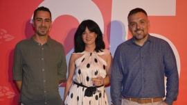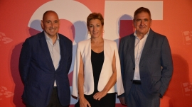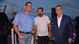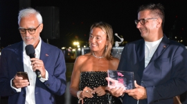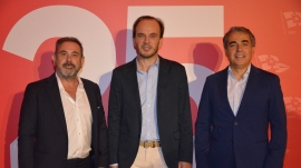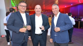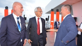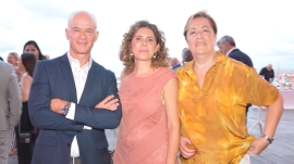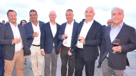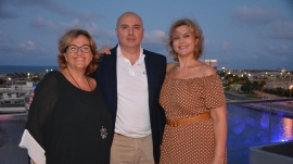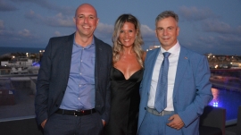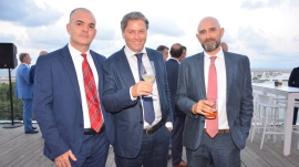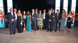 Ignazio Messina, CEO de Ignazio Messina & C. S.p.A. junto a Dolores Cigalat, Branch Manager en Valencia y Federico Spinnato, Country Manager en España, en la celebración del 25 aniversario de la compañía en España. Foto J.C.P.