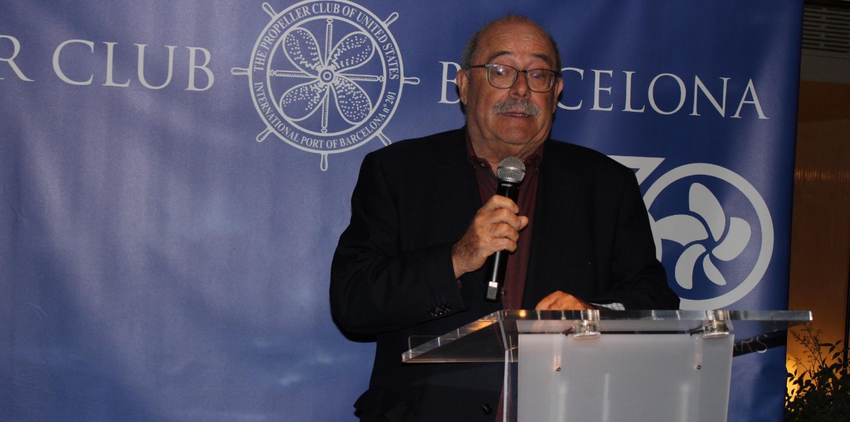 Damià Calvet, expresidente de Port de Barcelona; Manel Nadal, secretario de Movilidad e Infraestructuras de la Generalitat; Gonzalo Sanchís, presidente de Propeller Club de Barcelona; Lluís Salvadó, expresidente de Port de Barcelona; y Enric Ticó, presidente de FETEIA-OLTRA. Foto M.V.