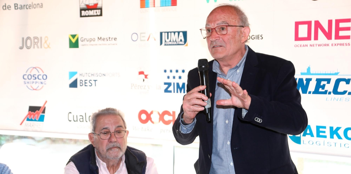 En la imagen, el presidente del Club del Transitario Marítimo (CTM), Jaume Altisent, flanqueado por el presidente de ATEIA-OLTRA Barcelona, Emili Sanz; el presidente de la Asociación de Empresas Estibadoras, Javier Vidal, y el director del Puerto de Barcelona, José Alberto Carbonell. Foto J.P.