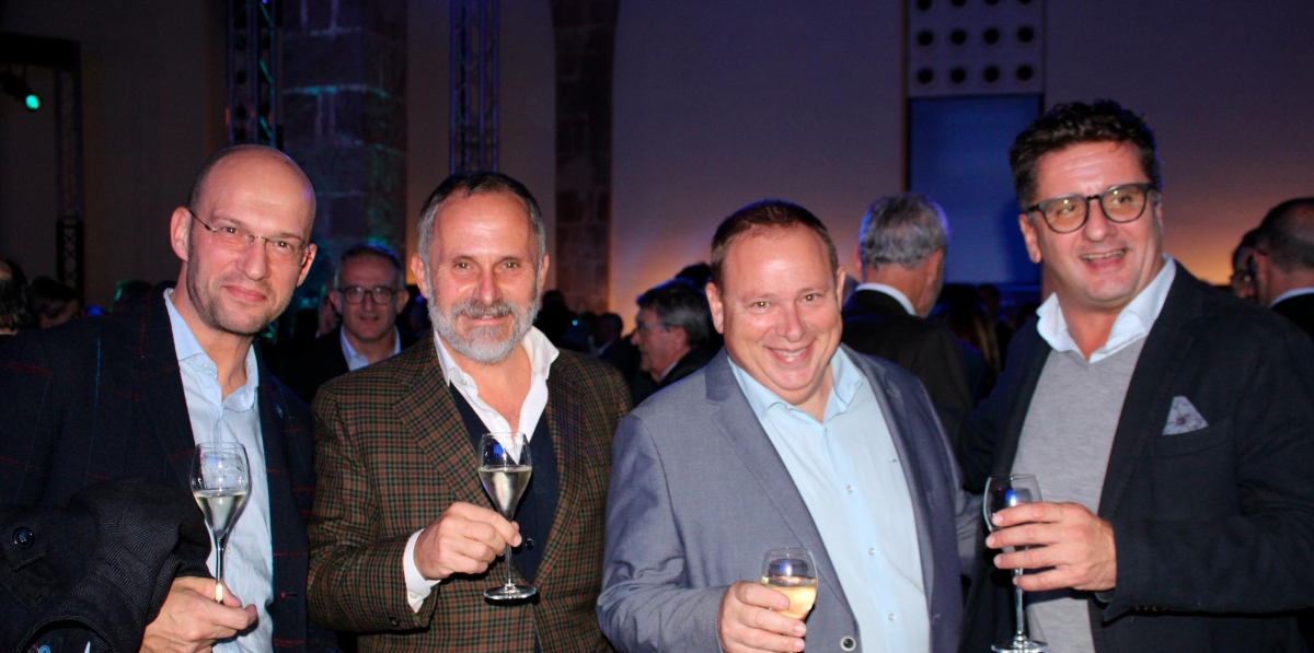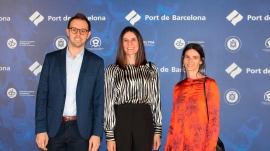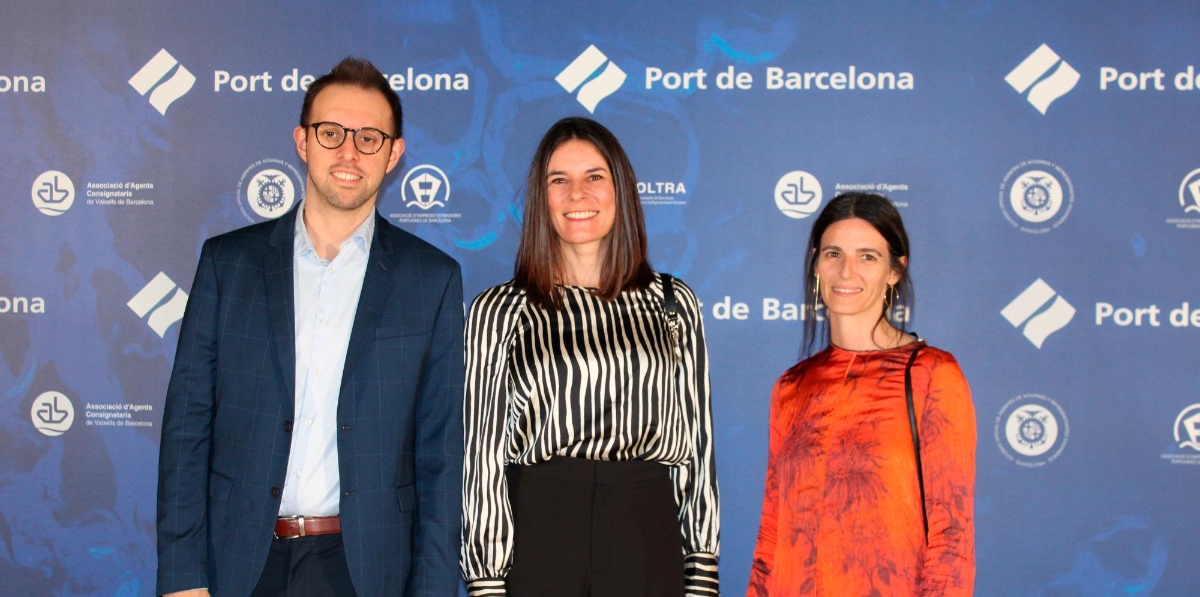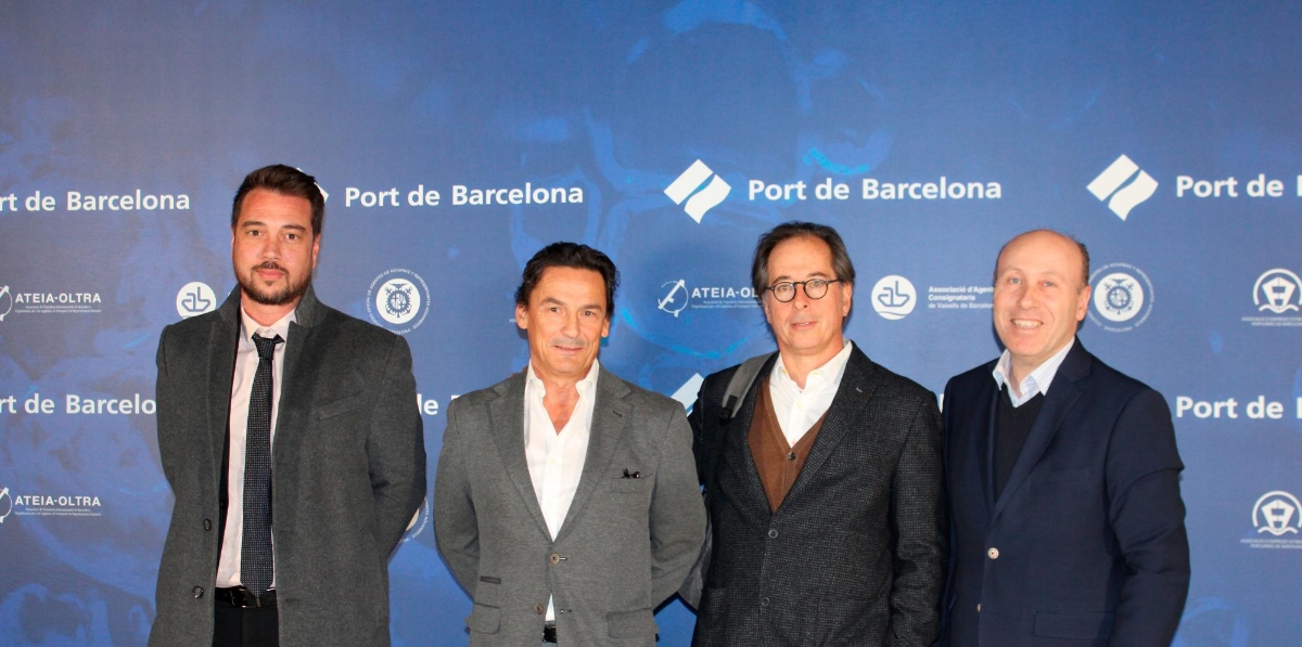 Lluí Salvadó, presidente de Port de Barcelona; Jordi Trius, ex-presidente de la Asociación de Agentes Consignatarios de Buques de Barcelona; Javier Vidal, presidente de la Asociación de Empresas Estibadoras Portuarias de Barcelona; Salvador Richart, presidente de la Asociación de Agentes Consignatarios de Buques de Barcelona; Antonio Llobet, presidente de COACAB y Emili Sanz, presidente de ATEIA-OLTRA Barcelona. Foto J.P.M.