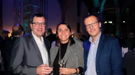 Lluís Salvadó ha entregado un galardón a Jordi Trius, en honor a su trayectoria al servicio de la comunidad portuaria de Barcelona.