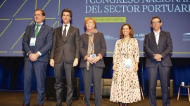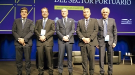 Presidentes de las Autoridades Portuarias Españolas junto al presidente de Puertos del Estado, Gustavo Santana, el Secretario General de Transportes Aéreo y Marítimo, Benito Núñez y el Comisionado del Corredor Atlántico, José Antonio Sebastián. Foto J.C.P.