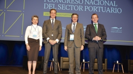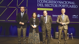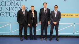 Gustavo Santana Hernández, presidente de Puertos del Estado; Ana Núñez, directora general de Marina Mercante; Vicente Boluda, presidente de la Asociación de Navieros Españoles (ANAVE); y Mark Assaf, jefe de la sección de Desarrollo de Recursos Humanos / TrainForTrade de la UNCTAD. Foto R. T.