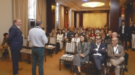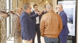 Rafael Part, jefe de Postventa de Jordi Motors; Violeta Boluda, CEO de Violeta Boluda Formación; José Fernández, delegado comercial de Vivasur Truck Rent; Jordi Serra Sansaloni, CEO de Sansalo; María José Sansaloni, directora financiera de Jordi Motors; Fabián Sansaloni, gerente de Jordi Motors; Eduardo Medina, CEO de Jesmar Astec; José Ángel Huerta, director del Departamento de Sostenibilidad de Axoil; y José Luis Molinero, gerente de Negocio de Geotab.