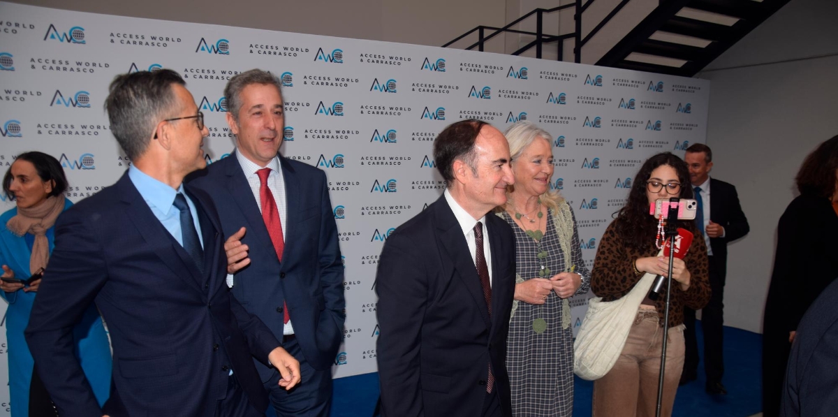 De izquierda a derecha, Nicolás M. Andión, director de Desarrollo de Negocio de la APBA; José Blanco, regional general manager de Access World; Julio Carrasco, presidente de PJ Carrasco; Gerardo Landaluce, presidente de la APBA; y Jeremy Carr, CEO de Access World. Foto M.J.