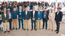 Sergio Carbonell, jefe de Salvamento Marítimo de la Región de Murcia; Ana Correa, presidenta de COEC; Rafael Quesada, presidente de AEVE; Pedro Pablo Martínez, presidente de la Autoridad Portuaria de Cartagena; Francisco Prado, director general de Grupo Diario; Óscar Villar, capitán marítimo de Cartagena; José María Fernández, presidente de ASEAM; José María Gómez, director general de la AP de Cartagena; Gema García; José Verdú, director general de Movilidad y Transportes de la Región de Murcia; Álvaro Valdés, concejal del Área de Empleo, formación y Contratación del Ayuntamiento de Cartagena; Mario Vera, asesor de COEC. Foto J. C. P.