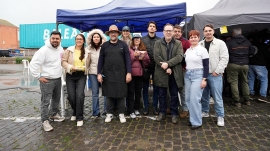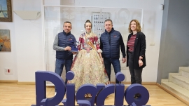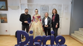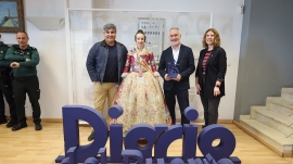 Imagen de los premiados junto a la Fallera Mayor de la Falla J. J. Dómine-Port y representantes de Diario del Puerto. En el momento de la imagen estaban ausentes los representantes de Etra-Electronic Trafic y Boluda Corporación Marítima. Foto R. T.
