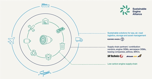 Erik Goedhart, SVP global head of Aerospace de Kuehne+Nagel, comenta: “La colaboración es clave para mejorar la sostenibilidad aeroespacial en toda la industria. Con “Sustainable Engine Alliance”, estableceremos nuevas normas para el abastecimiento y el transporte responsable de motores, al tiempo que concienciamos a la industria para que minimice conjuntamente el impacto medioambiental de las cadenas de suministro de motores. Confío en que, junto con Atlas Air y SR Technics, allanaremos el camino para futuros esfuerzos de sostenibilidad en el sector aeroespacial. E invitamos a otras empresas de la cadena de valor a que se unan a nosotros”.