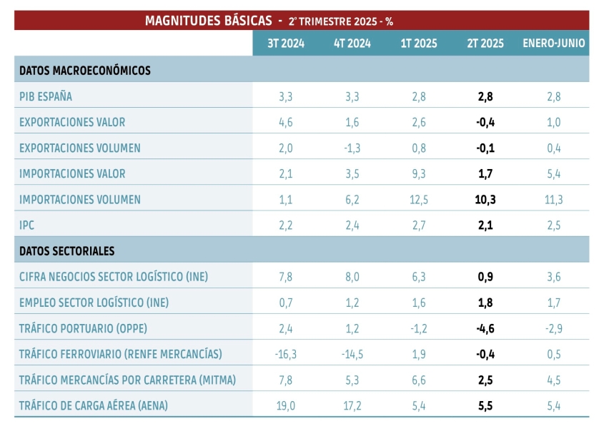 También se desaceleró el tráfico ferroviario, con un retroceso de las toneladas transportadas en el segundo trimestre del 0,4% tras el incremento del 1,9% en el arranque del año. El ratio acumulado en el primer semestre fue +0,5%.