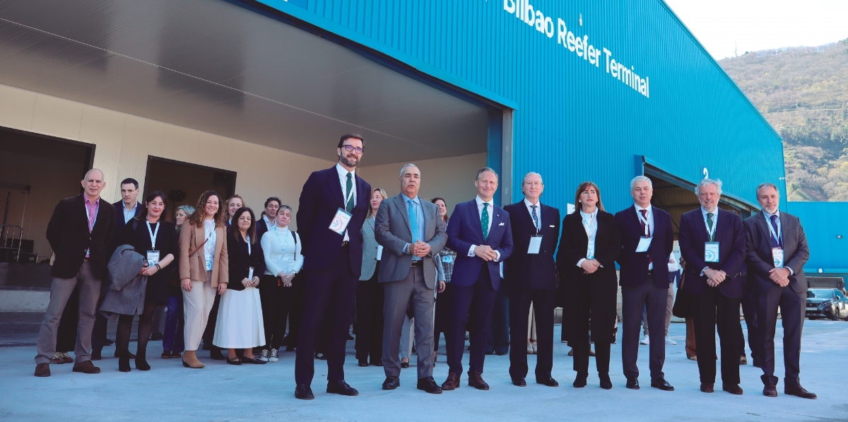 En la inauguración han participado (de izquierda a derecha): Pablo Bilbao, presidente de Progeco; Jimmy Jaber, presidente de UniportBilbao; Iván Jiménez, presidente de la Autoridad Portuaria de Bilbao; Eduardo Davila, presidente del Grupo Davila y de Altius; Karmele Ugalde, directora de Altius en Bilbao; Juanjo Pérez, director de Progeco Bilbao; Jaime García Mouriño, CEO de Altius; Mike Jauregui, Overseas Network Director de Altius. Foto J.P.
