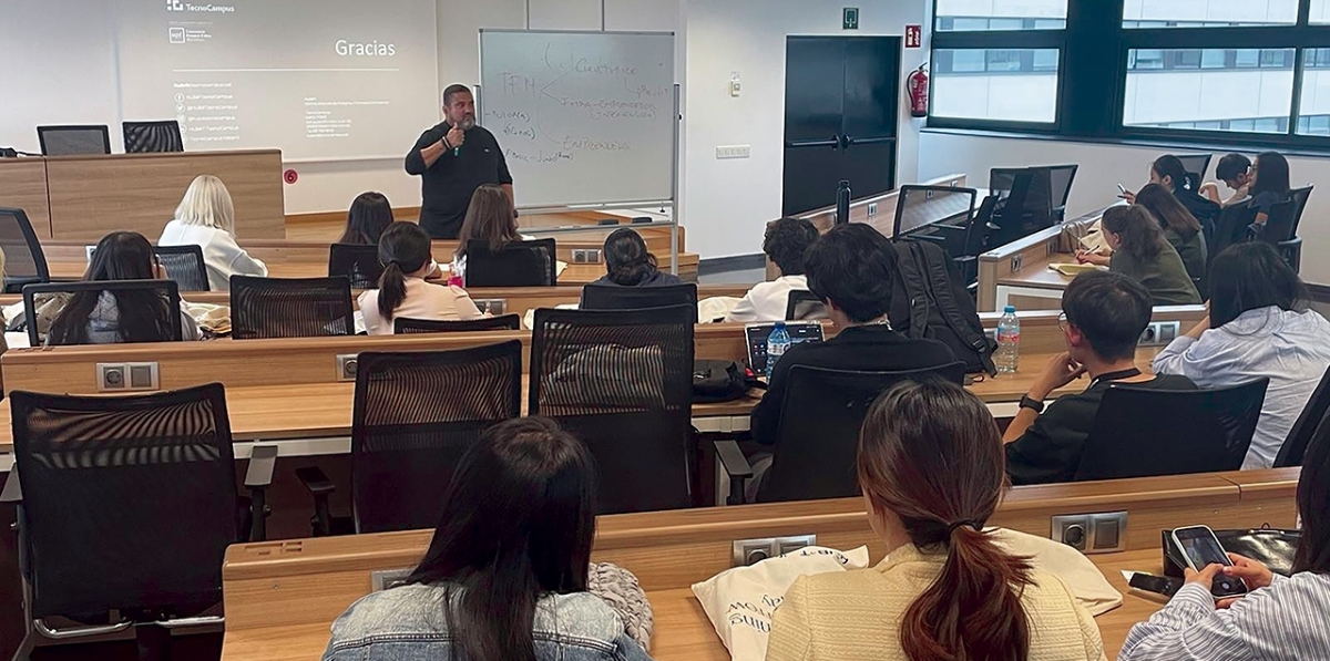 La jornada se inició con una sesión conjunta organizada por el Hub4T, que reunió a todos los estudiantes de posgrado y másteres del TecnoCampus. Posteriormente, los alumnos del máster en Logística fueron recibidos por el Dr. Jesús Martínez Marín, director del programa, quien presentó la planificación académica del curso y destacó la importancia de la diversidad y la multiculturalidad, valores que el TecnoCampus promueve desde su fundación.