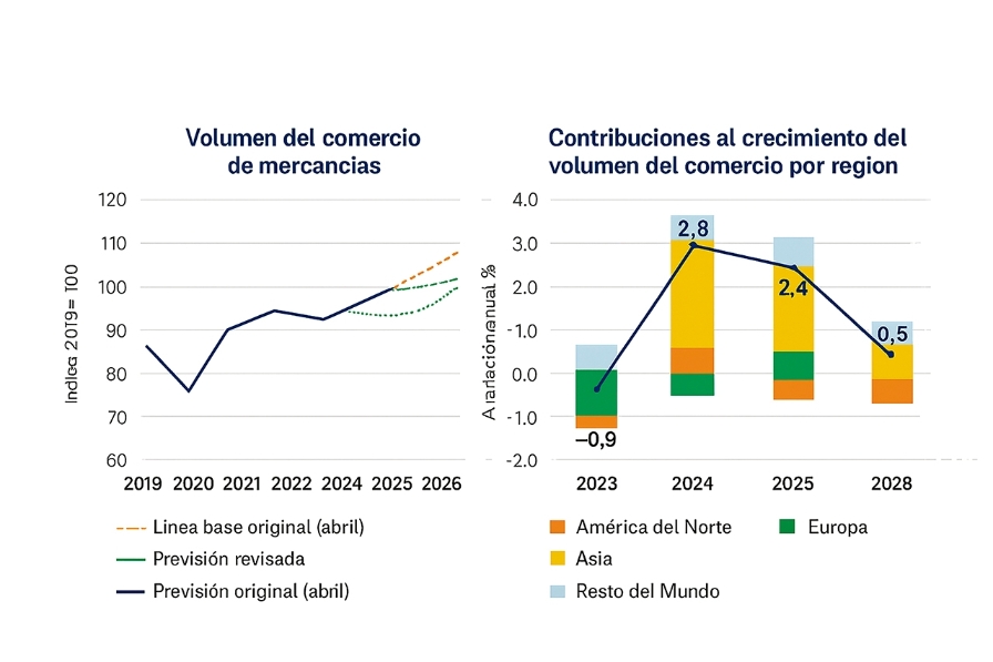El crecimiento del comercio de mercancías presenta marcadas diferencias por regiones. Asia sigue siendo el motor del intercambio mundial gracias a su especialización industrial y a la resiliencia de sus cadenas de suministro. China, Vietnam, India y los países del Sudeste Asiático mantienen tasas positivas de exportación, aunque más moderadas que en años anteriores.