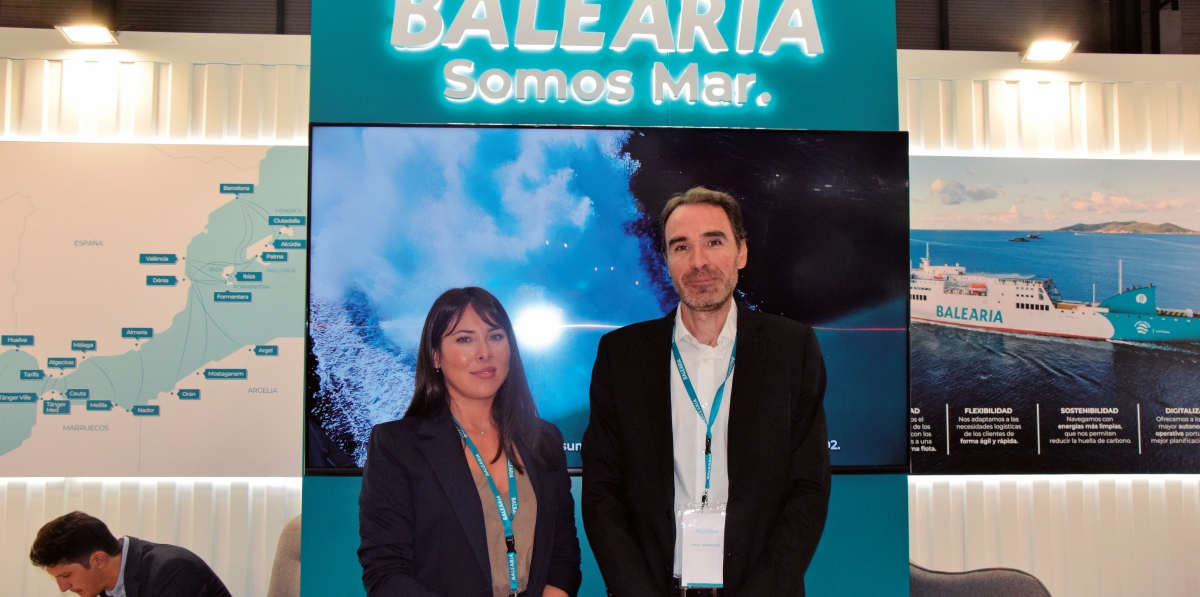 En Fruit Attraction, Baleària muestra su apuesta por el transporte refrigerado, pues representa el 35% de su carga. Los productos refrigerados, como frutas y hortalizas, representan un volumen que consolida a la naviera como un actor clave en la distribución logística de alimentos frescos y perecederos en los territorios donde opera. En este contexto, la compañía participa un año más con stand propio en Fruit Attraction, donde está mostrando su experiencia en el transporte marítimo de carga frigorífica para distribuir frutas y hortalizas con máxima puntualidad y frescura. La carga refrigerada representa el porcentaje más importante por tipología de mercancías de Baleària, que varía según las rutas. Con Baleares, la carga que requiere frío representa el 35%, frente al 25% con Marruecos. En la imagen, Sarah Cabrera, responsable de Desarrollo de Negocio de Balèaria, y Maximiliano Bermejo, director de Carga. Foto M.C.