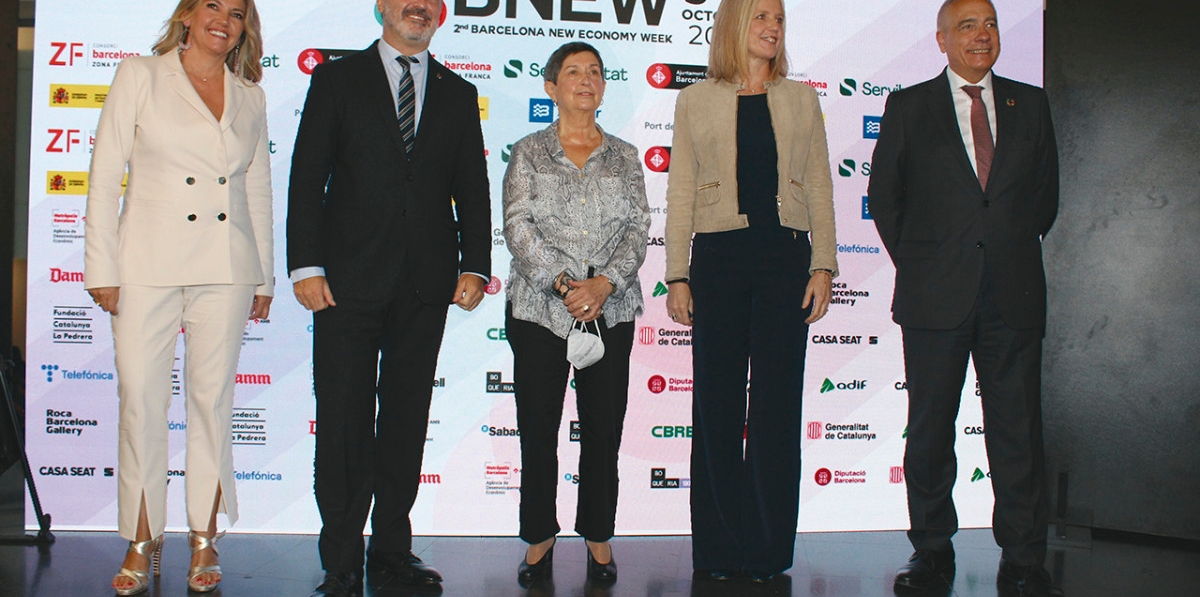 Blanca Sorigué, directora general del CZFB, y Pere Navarro, delegado especial del Estado en el CZFB, junto con Jaume Collboni, primer teniente de alcalde de Barcelona; Teresa Cunillera, delegada del Gobierno en Catalunya, y Maria Matilde Vilarroya, secretaria de asuntos económicos y fondos europeos del Departamento de Economía y Hacienda de la Generalitat de Catalunya, fueron los encargados de inaugurar la segunda edición de BNEW desde la Estación de Francia, evento que, en palabras de Vilarroya, “posiciona a Barcelona y a Catalunya en el centro de la nueva economía”.