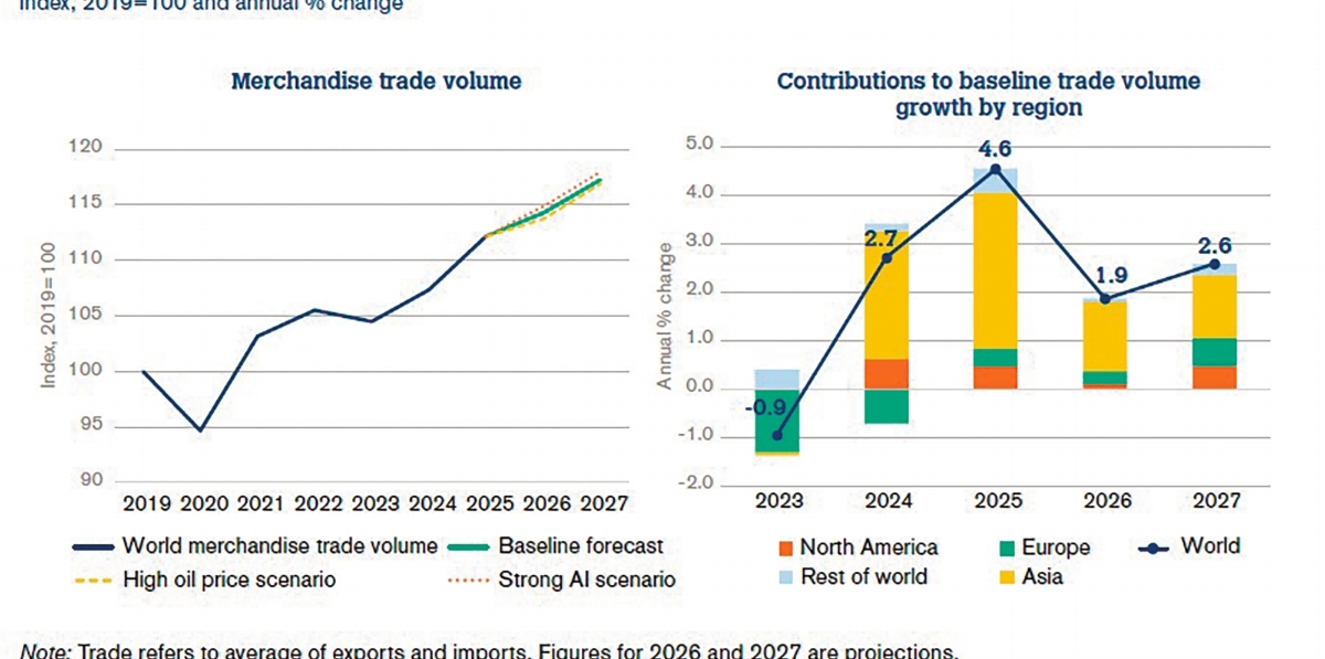 BILBAO. El informe Global Trade Outlook and Statistics de la OMC muestra con claridad el cambio de ciclo del comercio mundial tras el fuerte rebote de 2025 . Si el volumen de comercio ...