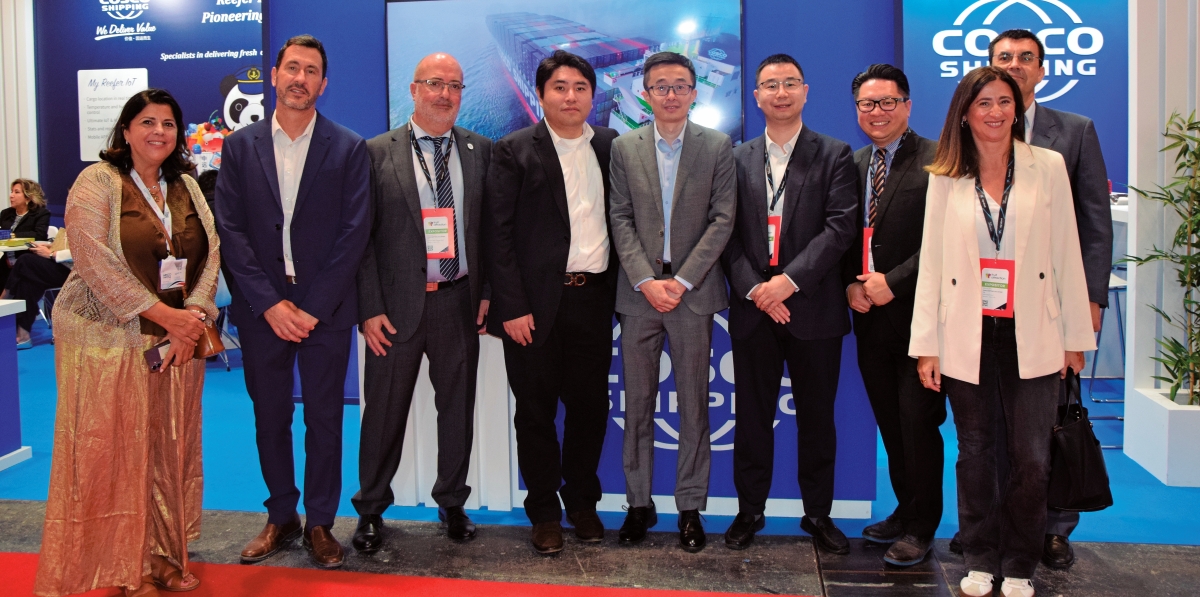 La compañía participa en la feria por cuarto año consecutivo y considera “imprescindible” estar presente en este evento que reúne a productores, exportadores, importadores, operadores logísticos y actores clave del sector hortofrutícola. David Garres (COSCO) destacó que la feria no solo permite un contacto directo con clientes del segmento de frutas y verduras, sino que también ofrece la oportunidad de estrechar lazos con operadores logísticos y con representantes internacionales de la propia naviera. “Fruit Attraction es un punto de encuentro muy importante porque aquí convergen agentes de Cosco de distintos países, incluida la presencia de los líderes de la central relacionados con el tráfico de mercancías”. Uno de los aspectos más relevantes en la agenda de Cosco es la recuperación de los tiempos de tránsito previos a la crisis del Mar Rojo en ciertas rutas estratégicas. Foto M.C.
