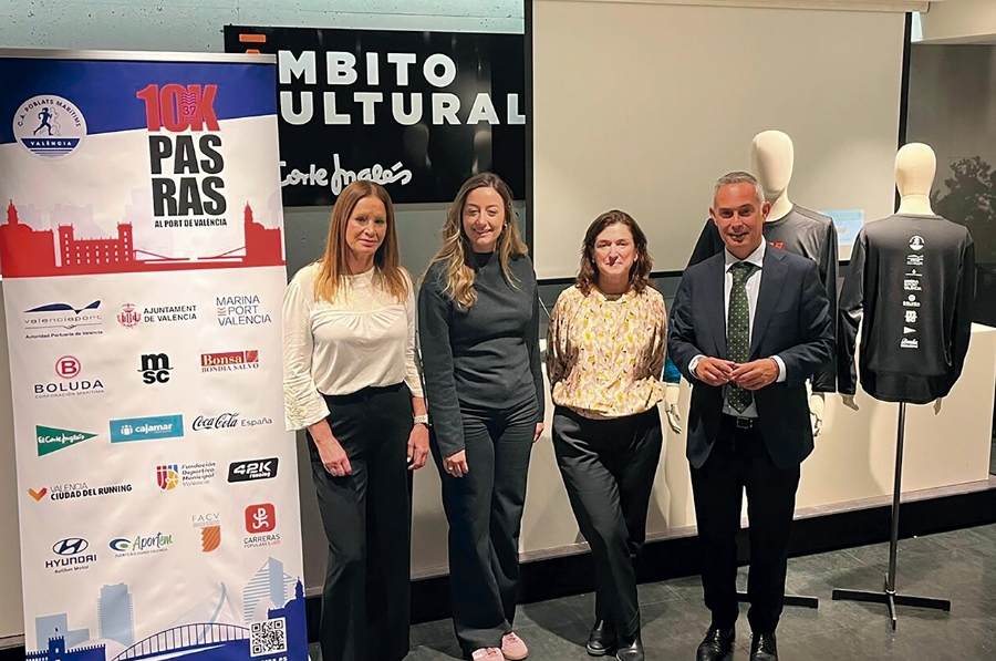 VALENCIA. El acto de presentación de esta edición del Pas Ras al Port de València ha contado con la presencia de Rocío Gil, concejala de Deportes del Ayuntamiento de Valencia; Marta Vilallonga, jefa de gabinete de la presidencia de la Autoridad Portuaria de Valencia; Elvira Bioque, presidenta del Club d’Atletisme Poblats Marítims, y Víctor Hernández, director regional de Comunicación, Sostenibilidad y Relaciones Institucionales de El Corte Inglés. También asistió la presidenta de la Federación de Atletismo de la Comunitat Valenciana, María José Orugo.