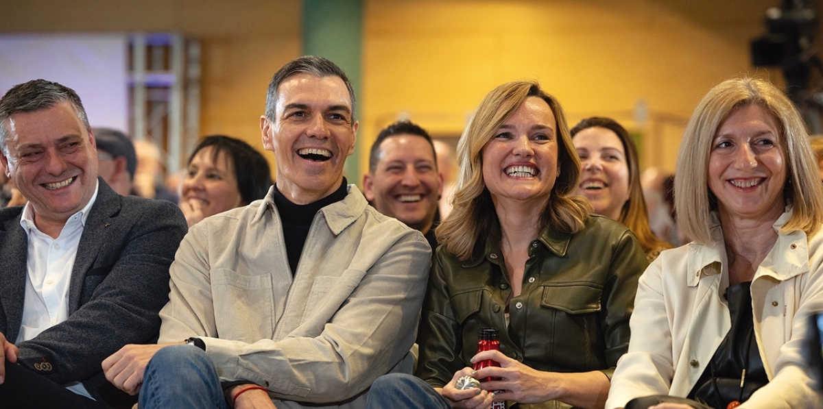 Pilar Alegría, en el centro, junto al presidente del Gobierno, Pedro Sánchez.