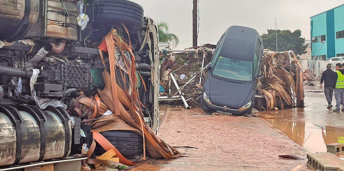 La DANA bloqueó la actividad en algunos de los nodos logísticos más importantes de la provincia de Valencia. En la imagen, cómo quedó el PI Oliveral en Riba-roja.