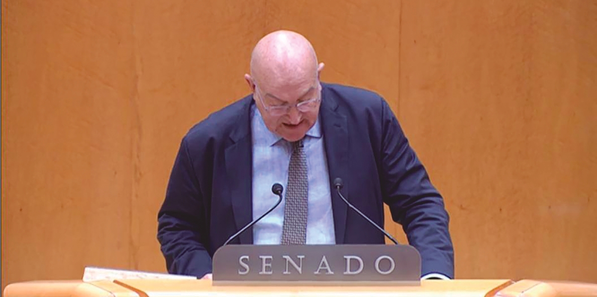 Jesús Carnero, senador y presidente de la Comisión de Transportes del Senado, ayer durante la presentación del dictamen del Proyecto de Ley de Movilidad Sostenible en el Pleno de la Cámara Alta.