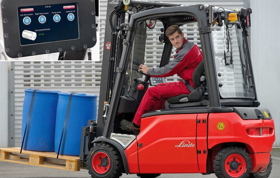 El sistema recientemente certificado incorpora funciones como control de acceso, comprobaciones antes de cada turno, calibración automática y un mantenimiento fácil. Todos los datos relevantes para la seguridad, como la concentración de gas y la temperatura de funcionamiento del motor, se muestran en un display. Completan el paquete los informes, la planificación del mantenimiento y una conexión inalámbrica a sensores de gas fijos.Este sistema consiste en una tablet PC con protección contra explosiones, un sensor con un pequeño depósito para la mezcla de gases de ensayo y una caja de relés con controlador. La conexión inalámbrica entre los sensores de temperatura y el controlador se proporciona a través del protocolo inalámbrico ZIGBEE, el cual es muy resistente y seguro.Toda la unidad de detección de gas se encuentra en una única envolvente del tamaño de una lata de refresco. Cada vez que se arranca la carretilla, el sistema comprueba la funcionalidad de los sensores, lo que lo hace mucho más manejable en comparación con otros sistemas en el mercado. Durante el funcionamiento, el sistema muestra constantemente al conductor todas las condiciones de funcionamiento relevantes para la protección contra explosiones, como la temperatura o la concentración de gas en el aire. La caja con el sensor y la mezcla de gases de ensayo solo se ha de sustituir anualmente, como parte de un mantenimiento rutinario realizado por un técnico.El sistema se puede utilizar simultáneamente para el control de acceso de vehículo. Se pueden asignar diferentes códigos PIN a conductores, gestores de operaciones y técnicos. Una vez el conductor ha iniciado sesión correctamente, existe la opción de presentar un proceso de reconocimiento breve antes de arrancar la carretilla, cuyo objetivo es recordar al conductor que está manejando una carretilla especializada con protección contra explosiones para zonas 2. Durante el turno, el sistema crea un registro continuo de concentraciones de gas, con independencia de si estas sobrepasan o no los límites establecidos. Si se sobrepasan estos, la carretilla se para con una parada controlada y, si se fuese necesario, el sistema puede enviar una notificación mediante comunicación por radio al gestor de operaciones. Tan pronto como caiga la concentración de gas por debajo del límite aceptable, el conductor es notificado a través del display del sistema. De esta forma, la carretilla puede ser validada por un supervisor y se puede volver a poner en funcionamiento. Alternativamente, se puede configurar la carretilla para que permita al operario reiniciar la carretilla de forma independiente.Para los gestores de operaciones, la funcionalidad integrada de informes aumenta significativamente la transparencia, ya que son capaces de registrar todos los eventos, como alarmas o la progresión de la concentración de gas. Utilizando este sistema de supervisión, un gestor de operaciones puede comprobar el concepto de seguridad operativa existente de forma frecuente, afirma Herbert Kunkel, director ejecutivo de Proplan, filial de Linde Material Handling.Si se utiliza de esta forma, el sistema puede evitar que la carretilla acceda a un área en la que la concentración de gas ya haya sobrepasado los niveles admitidos. Además, las carretillas o flotas de carretillas se pueden integrar en un concepto de seguridad interdepartamental para toda la planta, con documentación diaria y supervisión de las condiciones relacionadas con la seguridad.
