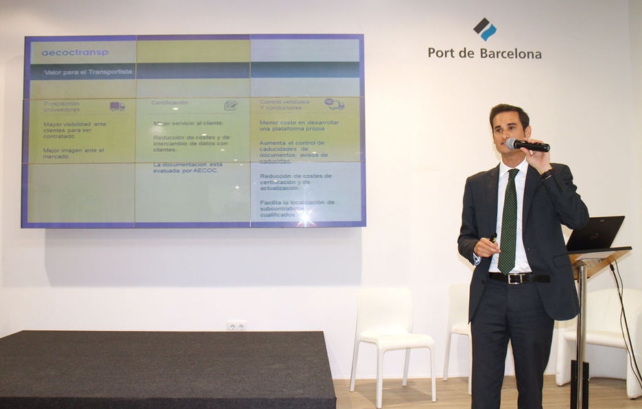 Xavier Contijoch, responsable comercial de AECOC, fue el encargado de presentar en el stand del Puerto de Barcelona esta nueva herramienta puesta al servicio de la cadena de suministro, una plataforma que se puede incorporar a todos los diferentes sistemas que utilizan las compañías. Algunas de las ventajas que Aecoctransp ofrece, además de dar visibilidad y transparencia a toda la cadena de suministro, es, para el cargador, el control de la documentación de vehículos y conductores; la búsqueda de empresas transportistas acelerando el tiempo de contratación; la disminución de la carga administrativa, y la evaluación y validación de la documentación.En cuanto al transportista, con Aecoctransp puede controlar el estado documental de sus vehículos y conductores a través de alarmas de caducidad; tener una mayor visibilidad ante los clientes; reducir sus costes administrativos y de intercambio de documentos con los clientes; y dar confianza y seguridad a las empresas de que cumplen los requerimientos demandados, entre otros.