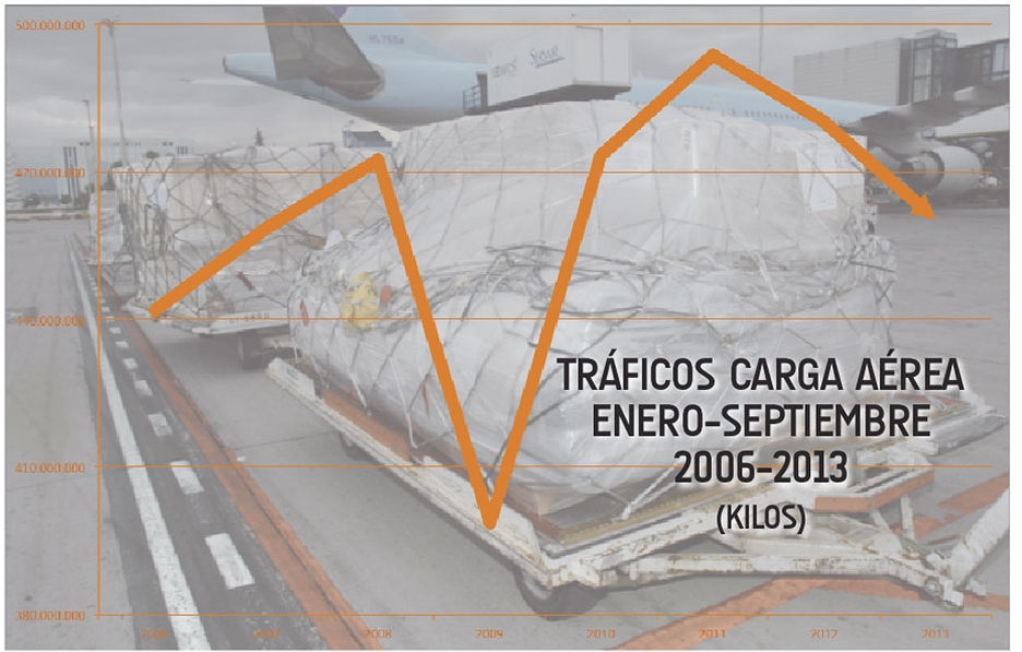 Hasta septiembre los aeropuertos españoles gestionaron un total de 460,2 millones de kilos, un 4,1% menos que en el mismo periodo del año anterior. Esto supone que el tercer trimestre del año aceleró el retroceso, ya que en el primer semestre éste se situaba en el -3,8%.La clave es que el retroceso del tercer trimestre, del -4,8%, casi igualó la caída en el arranque del año (-4,9%) y echó por tierra la ralentización en el segundo trimestre del ejercicio (-1,8%).Desde el punto de vista del origen y destino de la carga, los fundamentos de este negativo tercer trimestre se encuentran en la carga internacional. Tras arrancar el año con una caída del 2,3% y frenarse en el segundo trimestre con incluso una subida del 0,43%, en el tercer trimestre el descenso se fue hasta el 4,9%, para dejar el acumulado del año en 373,9 millones de kilos de carga internacional, un 3,6% menos que el año pasado.Esta evolución anuló la ralentización de la caída de la carga nacional, que si en el primer trimestre caía a un ritmo del 15,2% y en el segundo el descenso fue del 10,7%, en el tercero fue del -4,4%. En total, entre enero y septiembre la carga nacional ascendió a 86,2 millones de kilos, un 6,1% menos que en igual periodo de 2012.Por aeropuertos, la situación de Madrid Barajas siguió arrastrando al conjunto del sistema aeroportuario con retrocesos mes a mes cada vez más importantes. En septiembre, por ejemplo, el descenso alcanzó el 8,5% y dejó el tráfico de Barajas al cierre del tercer trimestre en un total de 246,62 millones de kilos, un 6,8% menos que a esas alturas de 2012.Además, Madrid-Barajas siguió reduciendo su peso en el conjunto del sector de la carga español. En 2012, hasta septiembre sus tráficos representaban el 55% del total de la carga de los aeropuertos españoles. En cambio, a septiembre de 2013 ya estaba en el 53%, reduciendo su cuota dos puntos porcentuales.La evolución del Aeropuerto de Barajas contrasta con la de los otros tres grandes aeropuertos cargueros españoles, en una posición hasta septiembre bastante mejor.Destaca la evolución de Vitoria, que tras crecer un 6,7% en septiembre acumula un incremento del 6,9% al cierre del tercer trimestre. Barcelona, por su parte, creció un 0,7% en septiembre y acumula un incremento del 1,6%. Zaragoza por último creció en septiembre un 1,3%, lo cual no impidió que acumule entre enero y septiembre un retroceso del 0,4%.