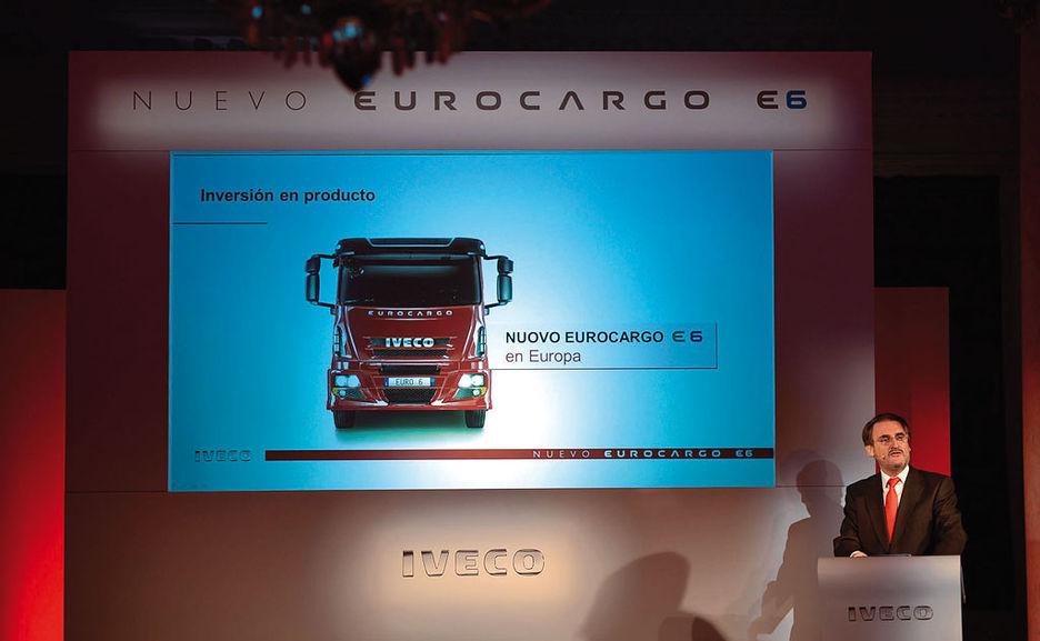 Iveco presentó ayer en la Embajada de Italia en Madrid, el nuevo Eurocargo Euro 6, el vehículo del segmento medio, líder del mercado europeo desde su origen, que marca ahora un nuevo hito combinado la innovación y las altas prestaciones con la optimización del consumo, gracias a la exclusiva tecnología HI-eSCR, que reduce las emisiones de NOx en más de un 95%. El nuevo modelo, según fuentes de Iveco, "se adapta a cualquier necesidad con 11.000 combinaciones posibles gracias a sus 14 variantes de masa total, motores con 7 potencias, 13 cambios, 15 distancias entre ejes, tres tipos de cabinas con dos alturas de techo y tracción 4x2 y 4x4.