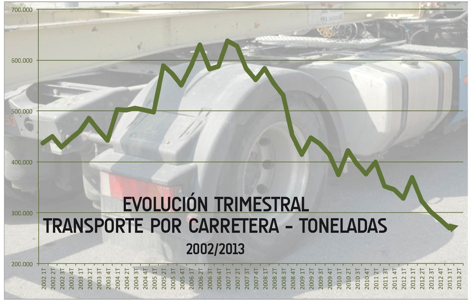 El segundo trimestre del año en el sector del transporte de mercancías por carretera no da ningún motivo para la esperanza. Los 233,46 millones de toneladas transportadas entre abril y junio son un 15,08% menos que en el mismo periodo de 2012 y, además, el sector muestra una sólida debilidad en el tráfico interior, con descensos muy abultados del transporte intramunicipal (-29,18%) y del intrarregional (-15,54%), quedando el interregional en el -6,84%. La situación del internacional es algo menos mala al caer en el segundo trimestre un 4,6% frente al 10,1 del primer trimestre, si bien sigue siendo un retroceso significativo.Hay que señalar que desde el punto de vista de las toneladas-kilómetro, en el transporte internacional el descenso fue del -1,45%, una cifra que podría entenderse como positiva dado el nivel de actividad reinante. En este apartado, en conjunto, el sector en España registró un tráfico de 48.286 millones de toneladas-kilómetro en el segundo trimestre, un 4,07% menos, con una caída del tráfico nacional del 5,53%.De esta manera, al cierre de la primera mitad del ejercicio, es cierto que las caídas se modulan con respecto al primer trimestre pero los ratios de retroceso en los que nos encontramos no apuntan a cambio de tendencia alguno. El descenso acumulado en toneladas es del 16,74% y en toneladas-kilómetro del 8,20%, ratios que a buen seguro volverán a empeorar en la segunda mitad del año si se cumplen los ciclos habituales. Por si esto fuera poco, los precios en el segundo trimestre se situaron un 3,11% por debajo del nivel alcanzado en igual periodo de 2012, por lo que ni siquiera el mercado ayuda desde este parámetro.