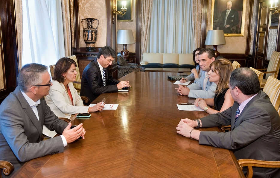 La presidenta de Navarra, Yolanda Barcina, recibió a los miembros de la Junta de la Asociación de Empresarios de la Ribera en el marco del compromiso de la celebración de reuniones periódicas de trabajo con los empresarios de la zona. En la reunión se abordó el tema del Tren de Alta Velocidad (TAV) a su paso por la Ribera. En este sentido, la Junta solicitó a Barcina que, más allá de los plazos del TAV, “es fundamental que se avance en la creación de un centro logístico para el transporte de mercancías en la Ribera”. A este respecto, la presidenta les transmitió que se trata de un tema “factible y prioritario” para el Gobierno de Navarra, que ya ha sido tratado con el Ministerio de Fomento y del que ya se abordado, incluso, la idoneidad de un posible terreno destinado al proyecto.Morosidad y financiaciónLos empresarios plantearon posteriormente el tema del Canal de Navarra, cuestión que consideran “un salto cualitativo para el desarrollo de la Ribera”. Los empresarios riberos también se mostraron interesados por la extensión de la banda ancha en los polígonos industriales de la zona y plantearon, asimismo, el tema de las devoluciones del IVA, solicitando que se realicen antes, algo sobre lo que el Gobierno de Navarra trata en la actualidad con el Gobierno central.Finalmente, los empresarios de la Ribera también manifestaron su preocupación por la alta morosidad en el sector privado, la ineficacia de las leyes concursales y la escasez de créditos, temas sobre los que se acordó celebrar encuentros específicos con la Dirección General de Industria del Gobierno de Navarra.