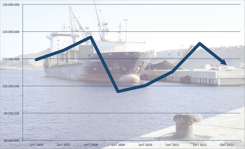 Las 28 autoridades portuarias españolas cerraron el primer trimestre de 2013, según los datos del Organismo Público Puertos del Estado (OPPE), con un tráfico total de 107,62 millones de toneladas, lo que supone un descenso con respecto al mismo periodo de 2012 del -6,89%. Este ratio supone moderar el descenso que se acumulaba hasta febrero (-8,53%), lo que es fruto del buen comportamiento en marzo de la mercancía en contenedores y de los graneles líquidos, si bien los puertos españoles volvieron a registrar un ratio mensual negativo por quinto mes consecutivo, en este caso del -3,79%.Algo menos de la mitad del tráfico portuario perdido en el primer trimestre (3,18 millones de toneladas) fueron responsabilidad de los graneles sólidos (-14,84%), mientras que prácticamente la otra mitad (3,35 millones de toneladas) se debe al retroceso de la mercancía general, que descendió un 6,24%. También contribuyó al mal arranque de año el retroceso del 3,54% de los graneles líquidos y del 2,31% del tráfico ro-ro. En cuanto a los cruceros, siguen sin dar todavía señales de recuperación, pues si bien las escalas se incrementaron un 2,17%, los pasajeros de cruceros retrocedieron entre enero y marzo un 6,76%.Si analizamos los puertos, sólo seis enclaves españoles tuvieron un primer trimestre del año en positivo: Valencia (+1,84%); Bilbao (+11,34%); A Coruña (+7,63%); Castellón (+1,04%); Marín (+17,8%); y Motril (+1,48%). Las dos claves del mal arranque de año están en los graneles sólidos y en el transbordo. Con respecto a los primeros, en el primer trimestre los puertos españoles movieron en total de 18,25 millones de graneles sólidos (-14,84%). Todos los grandes puertos para este tipo de tráfico registran fuertes descensos: Gijón, en lo alto del ránking con poco más de 3 millones de toneladas, cayó un 7,3%; Ferrol, con 2,05 millones, un 25,95%; Tarragona, 1,85 millones, cayó un 32,5%; y Cartagena, 1,19 millones, descendió un 13,1%.En cuanto al transbordo, la clave está en los contenedores, que tras un nefasto arranque de año mejoraron algo en marzo para cerrar el trimestre con 3,26 millones de TEUs (-3,42%). Destaca la fortaleza de los contenedores import-export que ascendieron a 1,17 millones de TEUs (+6,36%). No obstante, los contenedores en tránsito retrocedieron hasta los 1,74 millones de TEUs, un descenso con enorme peso en este tipo de tráfico y a la postre en el conjunto de tráficos del sistema portuario.