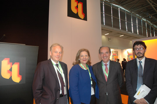 La feria atrajo el interés de cuatro puertos gallegos: Vigo, Ferrol, Vilagarcía y A Coruña, los tres primeros como expositores. Desde la izquierda: José Manuel Vilariño, presidente de la AP de Ferrol; Sagrario Franco, presidenta de la AP de Vilagarcía; Enrique Losada, presidente de la AP de A Coruña; Álvaro Rodríguez Dapena, director de Planificación y Desarrollo de OPPE. Falta en la foto, Ignacio López-Chaves, presidente de la AP de Vigo.