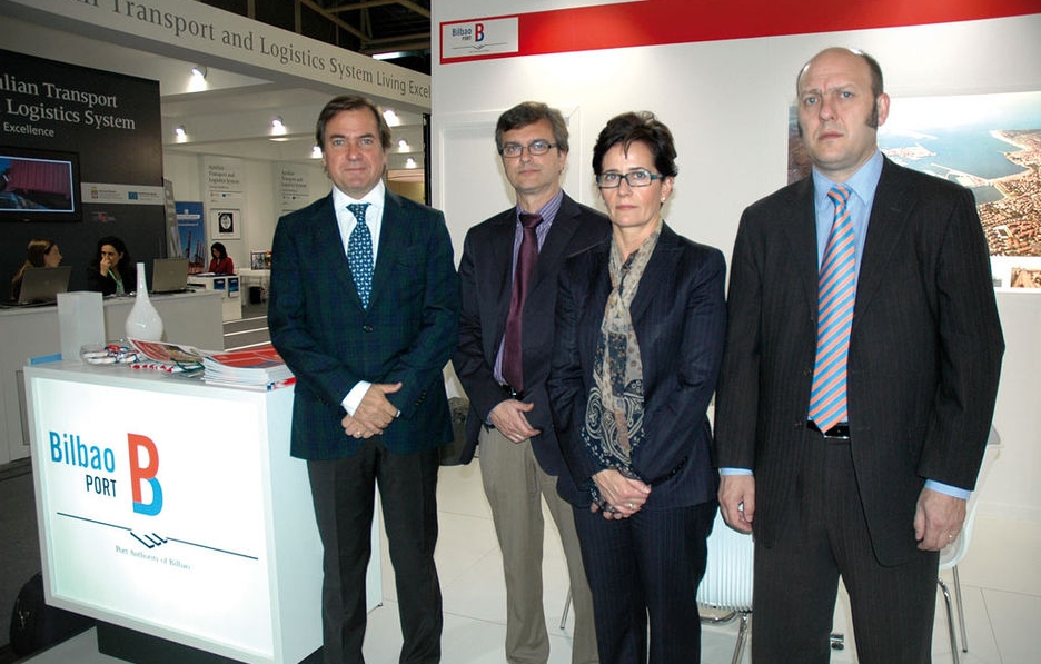 Desde el pabellón agrupado del ICEX, los representantes del Puerto de Bilbao presentan a las principales navieras, operadores logísticos y cargadores que exponen y visitan la feria, las terminales para todo tipo de mercancías, el gran número de servicios marítimos tanto de corta como de larga distancia, su amplia oferta modal marítimo ferroviaria, así como sus nuevas superficies y las nuevas oportunidades de negocio que se pueden generar con el desarrollo de las infraestructuras que la Autoridad Portuaria está llevando a cabo.Asier Atutxa, presidente de la APB; Luis Gabiola, director de Operaciones, Comercial y Logística de la Autoridad Portuaria de Bilbao; Julio Burgos, del departamento Comercial de la APB; y Amaya Sarasola, jefe de la Unidad de Márketing y Comercial de la APB, participan en el certamen 2013 de Transport Logistic.