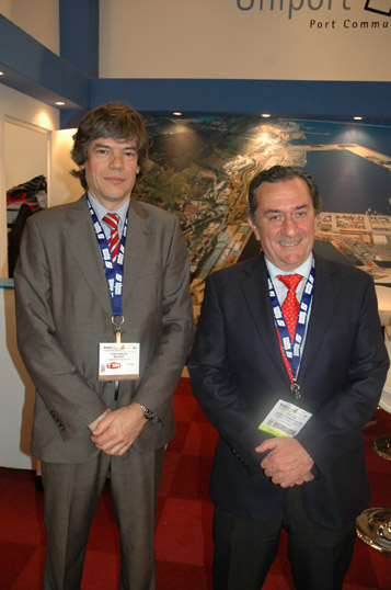 Juan Carlos Maurer (izq.), director gerente de Industrial Titán, firma bilbaína fabricante de toldos y entre otras especialidades, soluciones de embalaje para el sector logístico y portuario, participó en Amberes como una de la veintena de empresas asociadas a UniportBilbao que compusieron la delegación bilbaína. Junto a él, José Luis García Alzórriz, director de Universal Global Logistics en Bilbao. García Alzórriz se sumó así a la amplia nómina de profesionales de Marmedsa Noatum Maritime desplazados a Amberes, y que estuvo encabezada por su presidente, Antonio Campoy.