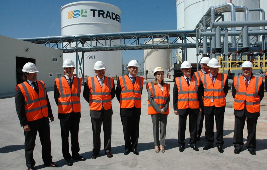 El Puerto de Barcelona, y más concretamente el Muelle de la Energía, se vistió con sus mejores galas ayer para recibir la visita de Artur Mas, presidente de la Generalitat de Catalunya, y de Ana Pastor, ministra de Fomento, quienes compartieron estrado con el ya mencionado Sixte Cambra, además de Josep Creixell, presidente de Tradebe, y Víctor Creixell, European Business Coordination and Development de la empresa. La inversión de Tradebe en el puerto se ha materializado en una terminal que opera desde el 1 de abril, construida sobre dos parcelas que están conectadas. Sus 29 tanques de almacenaje ofrecen una capacidad total es de 453.000 metros cúbicos. La característica principal que distingue a la terminal de Tradebe es que cuenta con conexión con el punto de atraque 34B, construido por el Puerto de Barcelona en 2011 y que ofrece un calado excepcional de 16 metros. "Este calado permite traer a Barcelona buques de hidrocarburos que no tienen acceso en ninguna otra terminal", explicaron los miembros de la familia Creixell.