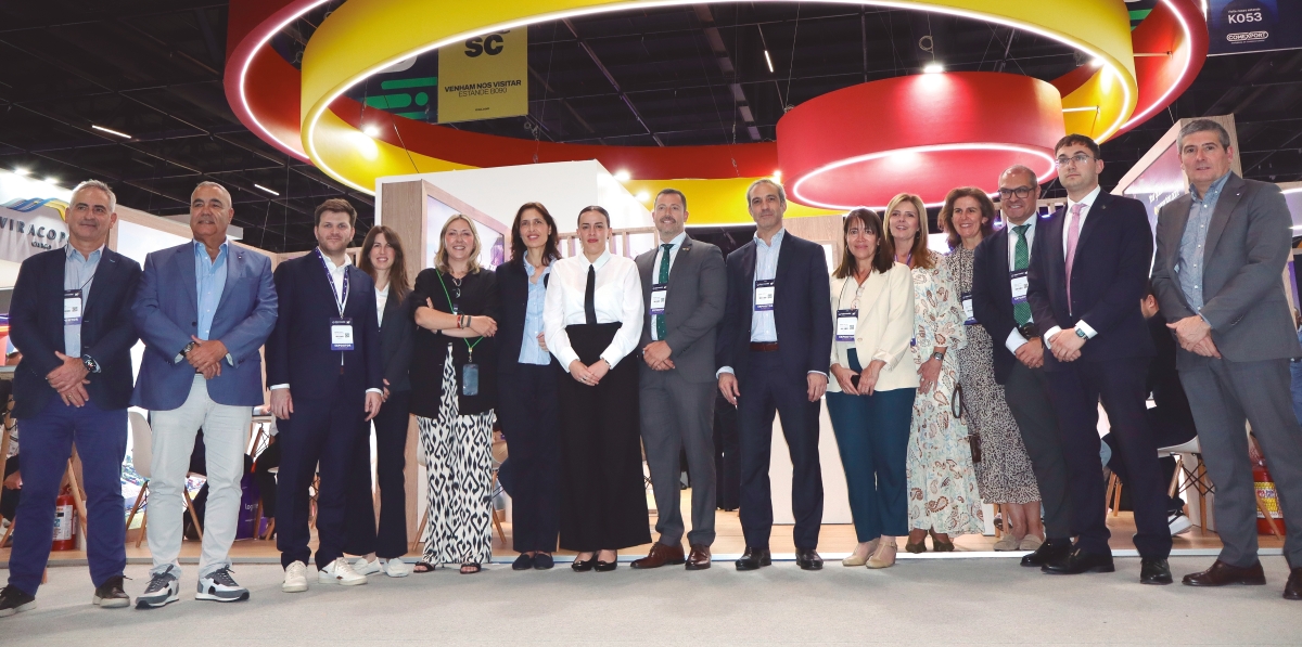Representantes de ICEX, de Puertos del Estado, de las seis autoridades portuarias presentes en la feria, de la Cámara de Comercio de España en Brasil y de la Embajada, en el stand de España en Intermodal South America 2026. Foto J.P.