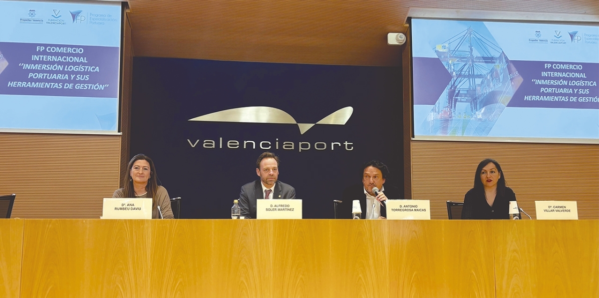 VALENCIA. La Fundación Valenciaport acogió la pasada semana en sus instalaciones a más de un centenar de alumnos de los ciclos formativos de Comercio Internacional y Logística y Transporte de FP de los centros IES Pere Boïl, IES Grao, CIPFP Ausiàs March y CIPFP Mislata con motivo del lanzamiento oficial de la nueva asignatura optativa de Conselleria: “Inmersión logística portuaria y sus herramientas de gestión”.