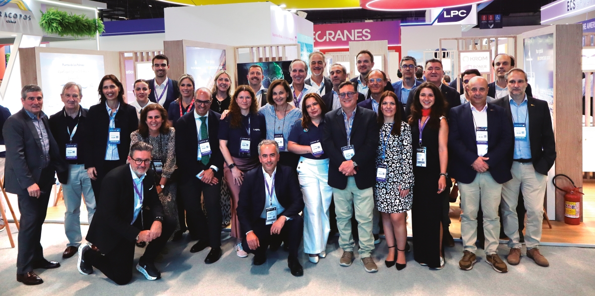 Parte de la representación de puertos y de empresas que han participado en el Pabellón de España en Sao Paulo. Foto J.P.